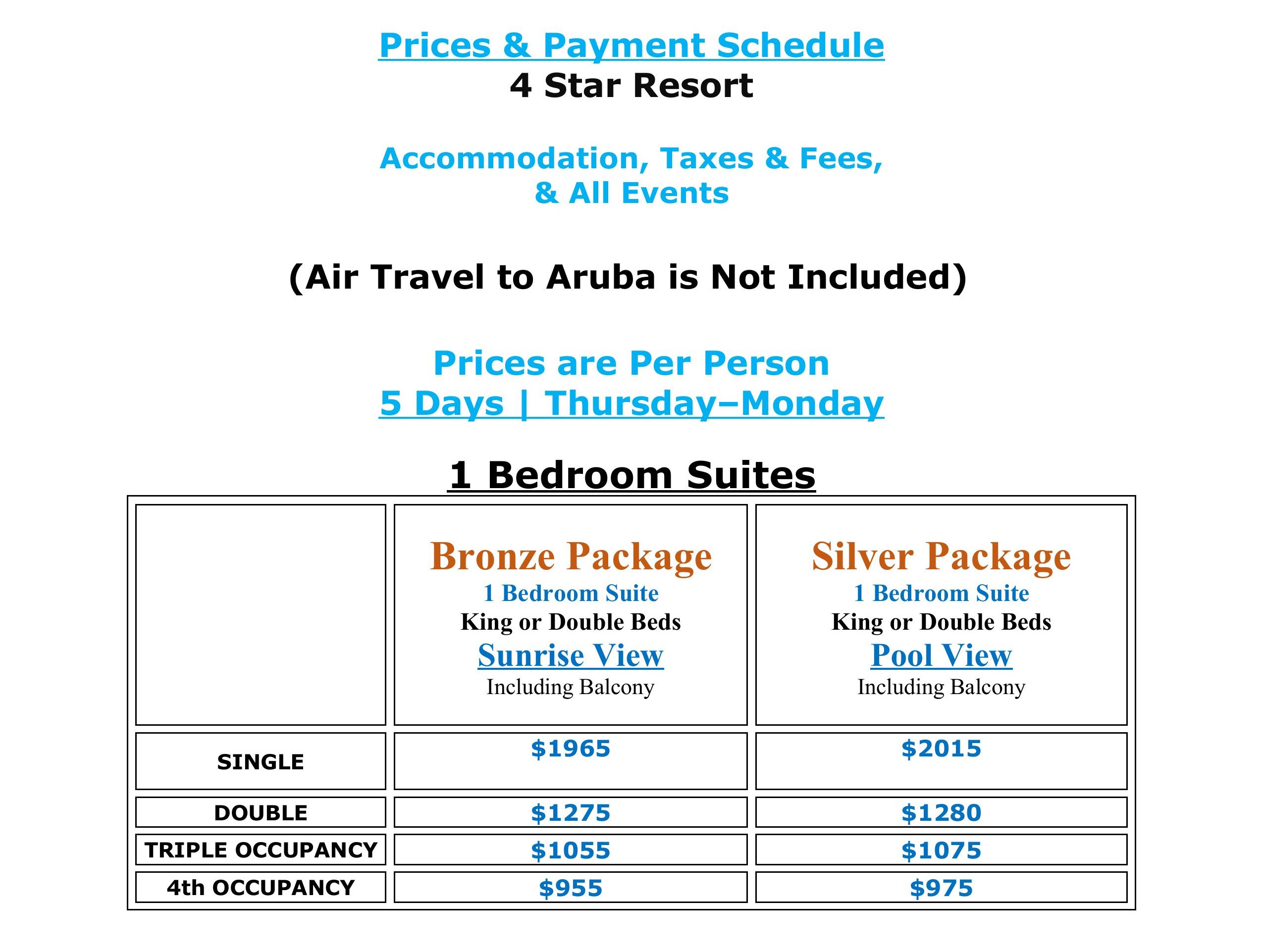 - Prices are based PER PERSON.